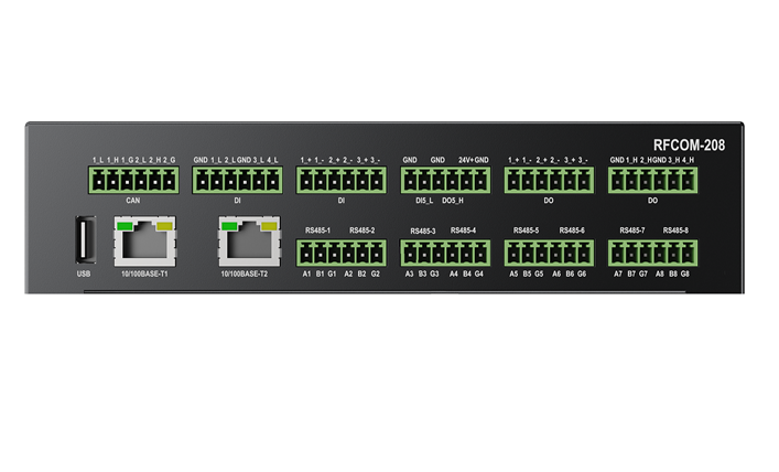RFCOM-208經濟型4G工業網關是為工控環境設計的一 款多接口,高性能RS485/CAN/DIDO通信管理終端。設 備集成了主頻高達798Mhz的ARM A7處理器,使用無風 扇靜音設計,適應復雜工業環境應用。