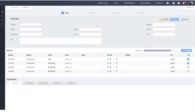 運維管理系統具備包括我的工單、故障工單、巡檢工單、保養工單等功能,為機房日常運維過程工作提供電子化、標準化的日常工作模式,用戶通過系統可以制定巡檢計劃、巡檢內容、執行巡檢任務,進行巡檢工作的規范化管理。